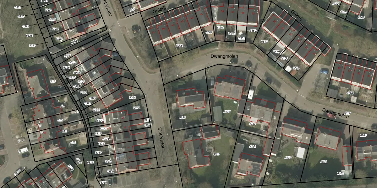 Het perceel waarop Dwangmolen 17 staat heeft een oppervlakte van 615 m². Dit is een groot perceel. De perceeloppervlakte wordt geregistreerd door het Kadaster. Gedetailleerde informatie over de maten van dit perceel kunt u vinden in het rapport Kadastrale kaart met maatvoering van Dwangmolen 17.