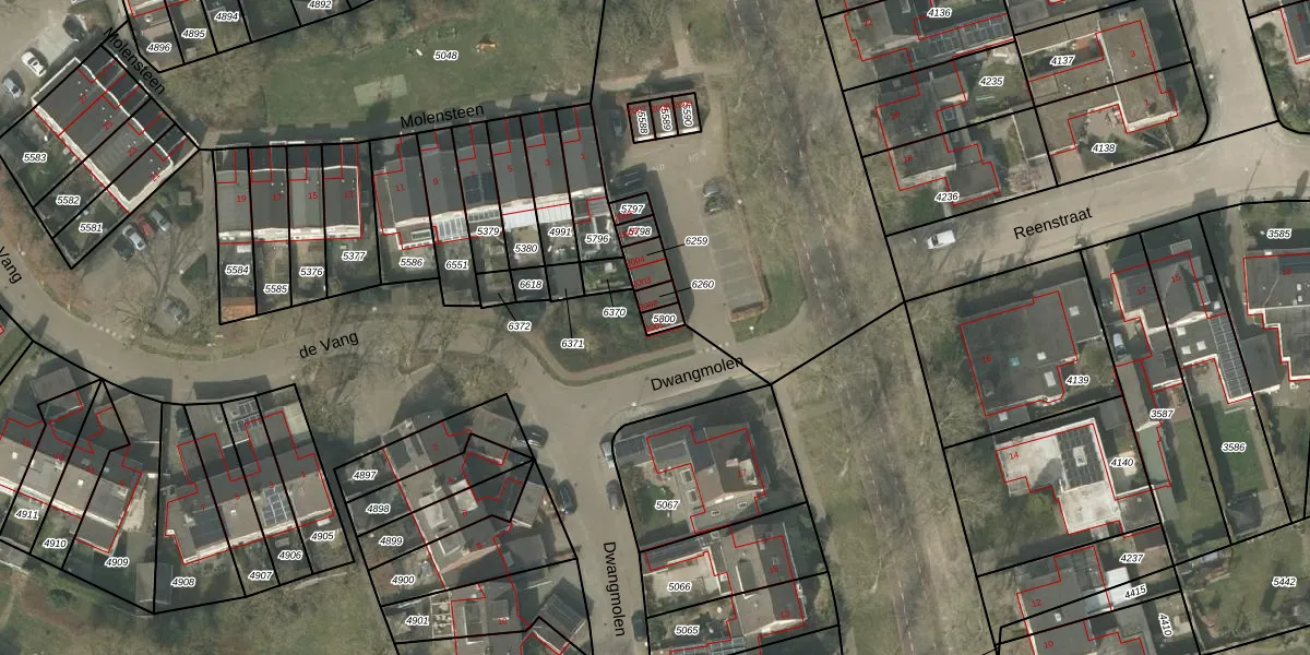 Het perceel waarop Dwangmolen 2001 staat heeft een oppervlakte van 22 m². Dit is een klein perceel. De perceeloppervlakte wordt geregistreerd door het Kadaster. Gedetailleerde informatie over de maten van dit perceel kunt u vinden in het rapport Kadastrale kaart met maatvoering van Dwangmolen 2001.