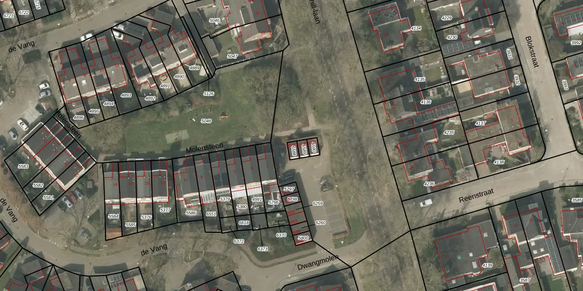 Het perceel waarop Dwangmolen 2007 staat heeft een oppervlakte van 21 m². Dit is een klein perceel. De perceeloppervlakte wordt geregistreerd door het Kadaster. Gedetailleerde informatie over de maten van dit perceel kunt u vinden in het rapport Kadastrale kaart met maatvoering van Dwangmolen 2007.