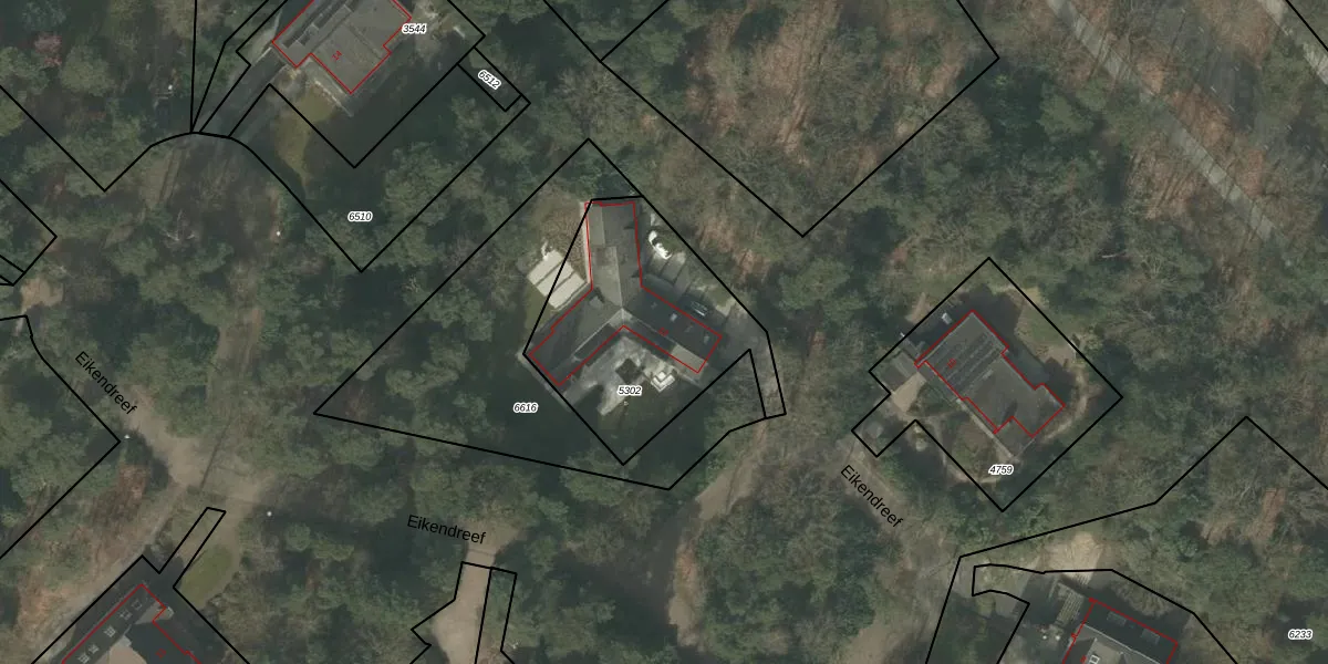 Het perceel waarop Eikendreef 12 staat heeft een oppervlakte van 860 m². Dit is een groot perceel. De perceeloppervlakte wordt geregistreerd door het Kadaster. Gedetailleerde informatie over de maten van dit perceel kunt u vinden in het rapport Kadastrale kaart met maatvoering van Eikendreef 12.