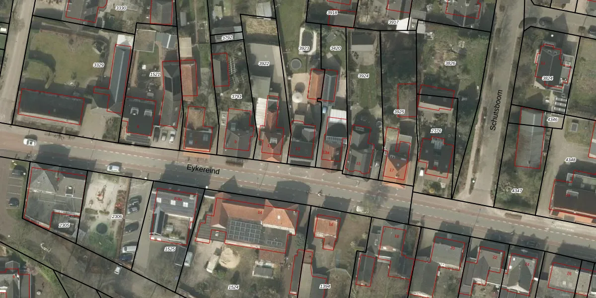 Eykereind 13 is gelegen op kadastraal perceel BEK00B3923. Deze kadastrale aanduiding is uniek en wordt gebruikt door het Kadaster om eigendomsrechten en andere zakelijke rechten vast te leggen. Het perceel maakt onderdeel uit van de kadastrale gemeente Bergeijk.