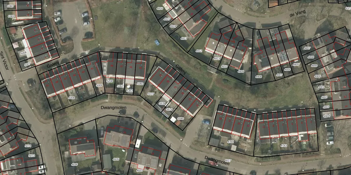 Gebruik de zoekbalk of klik op een perceel voor informatie over de adressen binnen dit perceel.