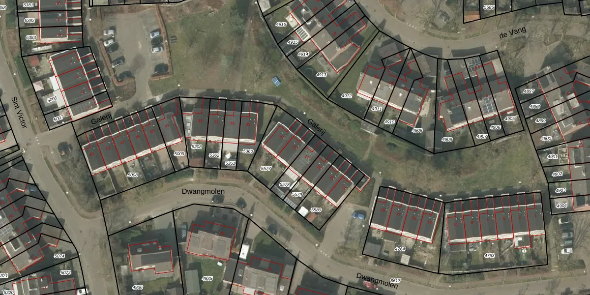 Het perceel waarop Galerij 29 staat heeft een oppervlakte van 312 m². Dit is een groot perceel. De perceeloppervlakte wordt geregistreerd door het Kadaster. Gedetailleerde informatie over de maten van dit perceel kunt u vinden in het rapport Kadastrale kaart met maatvoering van Galerij 29.