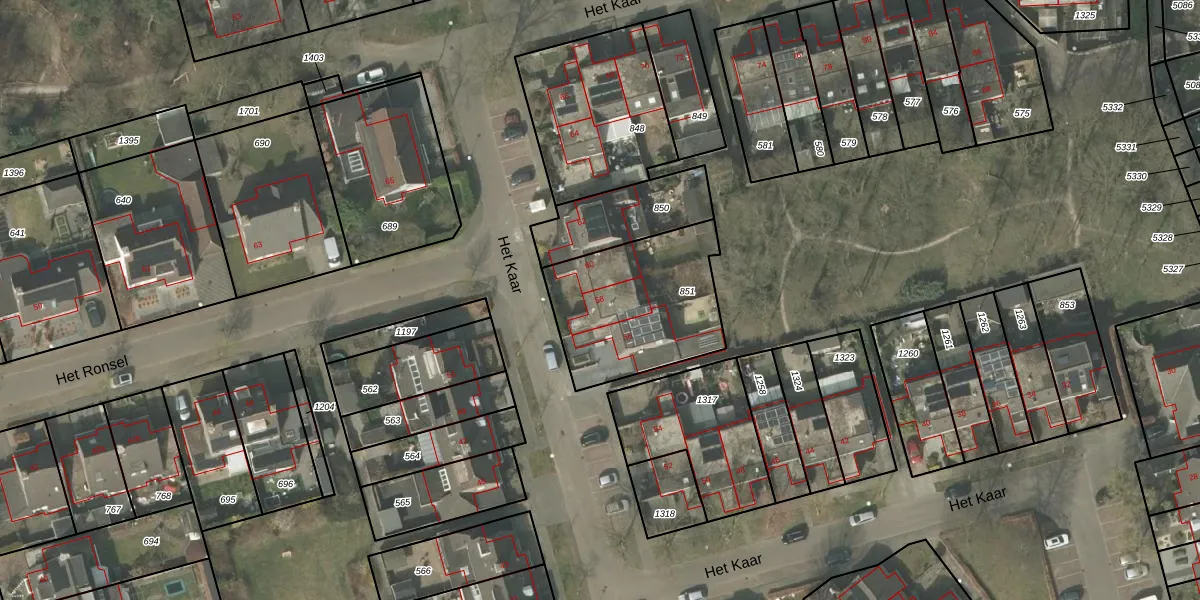 Het perceel waarop Het Kaar 58 staat heeft een oppervlakte van 571 m². Dit is een groot perceel. De perceeloppervlakte wordt geregistreerd door het Kadaster. Gedetailleerde informatie over de maten van dit perceel kunt u vinden in het rapport Kadastrale kaart met maatvoering van Het Kaar 58.