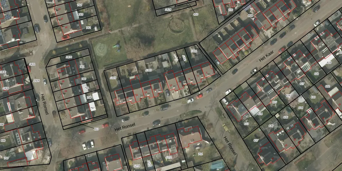 Het perceel waarop Het Ronsel 10 staat heeft een oppervlakte van 1029 m². Dit is een zeer groot perceel. De perceeloppervlakte wordt geregistreerd door het Kadaster. Gedetailleerde informatie over de maten van dit perceel kunt u vinden in het rapport Kadastrale kaart met maatvoering van Het Ronsel 10.