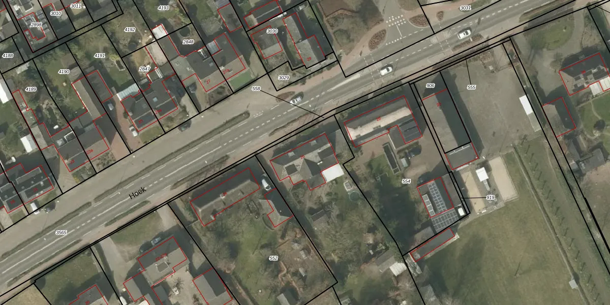 Het perceel waarop Hoek 26 staat heeft een oppervlakte van 4884 m². Dit is een zeer groot perceel. De perceeloppervlakte wordt geregistreerd door het Kadaster. Gedetailleerde informatie over de maten van dit perceel kunt u vinden in het rapport Kadastrale kaart met maatvoering van Hoek 26.