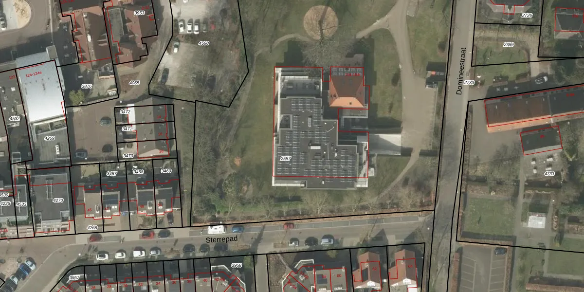 Het perceel waarop het adres ligt is BEK00-B-2557. De afkorting 'BEK00' staat voor kadastrale gemeente Bergeijk. De gemiddelde perceeloppervlakte in de kadastrale gemeente Bergeijk is 6106,02 m². Dit perceel is met zijn 6330 m² dus groter dan gemiddeld. Het kleinste perceel in de kadastrale gemeente is 0 m² groot. De grootste perceeloppervlakte is 2,07 km². Op het perceel liggen in totaal 15 adressen. In de Basisregistratie Kadaster (BRK) werden de grenzen van het perceel geregistreerd op 02-12-2011.
