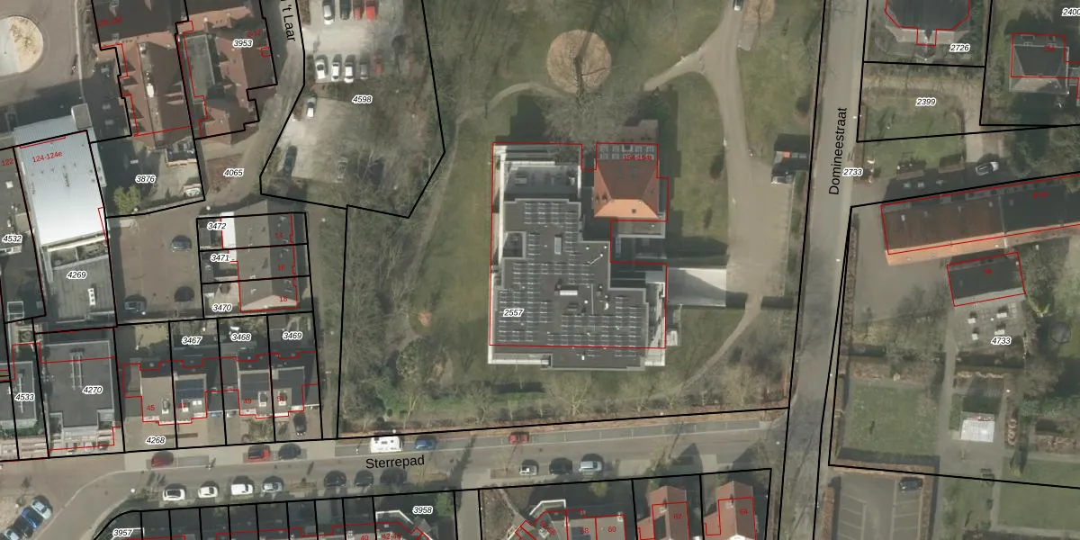 Het perceel waarop het adres ligt is BEK00-B-2557. De afkorting 'BEK00' staat voor kadastrale gemeente Bergeijk. De gemiddelde perceeloppervlakte in de kadastrale gemeente Bergeijk is 6106,02 m². Dit perceel is met zijn 6330 m² dus groter dan gemiddeld. Het kleinste perceel in de kadastrale gemeente is 0 m² groot. De grootste perceeloppervlakte is 2,07 km². Op het perceel liggen in totaal 15 adressen. De huidige grenzen van het perceel zijn digitaal in de Basisregistratie Kadaster (BRK) geregistreerd op 02-12-2011.