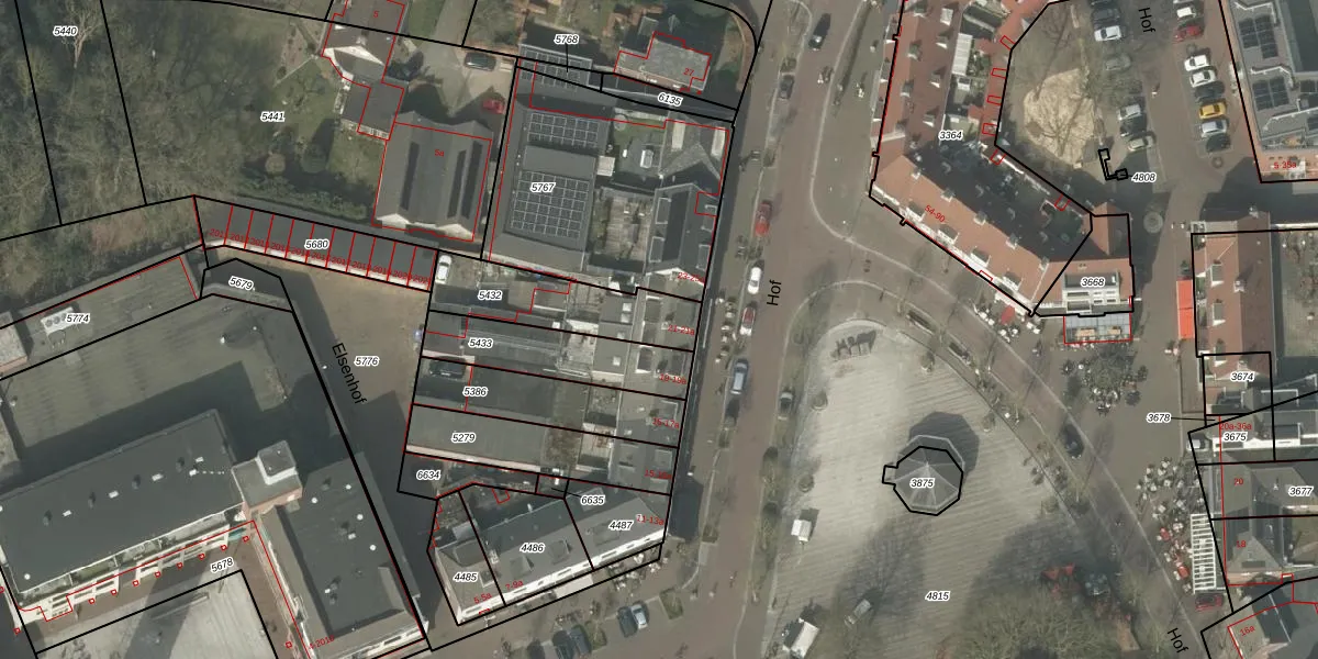 Het perceel waarop Hof 21-a staat heeft een oppervlakte van 321 m². Dit is een groot perceel. De perceeloppervlakte wordt geregistreerd door het Kadaster. Gedetailleerde informatie over de maten van dit perceel kunt u vinden in het rapport Kadastrale kaart met maatvoering van Hof 21-a.