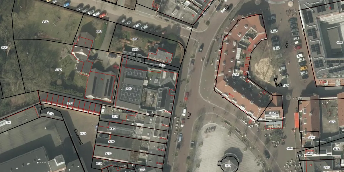 Het perceel waarop Hof 25 staat heeft een oppervlakte van 994 m². Dit is een groot perceel. De perceeloppervlakte wordt geregistreerd door het Kadaster. Gedetailleerde informatie over de maten van dit perceel kunt u vinden in het rapport Kadastrale kaart met maatvoering van Hof 25.