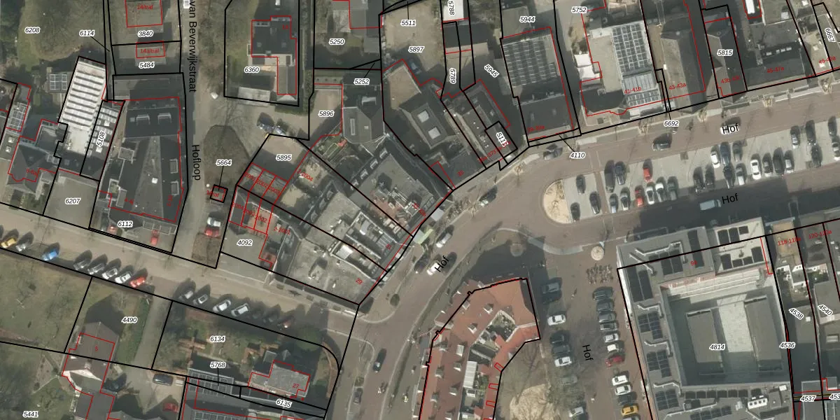 Het perceel waarop Hof 33 staat heeft een oppervlakte van 709 m². Dit is een groot perceel. De perceeloppervlakte wordt geregistreerd door het Kadaster. Gedetailleerde informatie over de maten van dit perceel kunt u vinden in het rapport Kadastrale kaart met maatvoering van Hof 33.