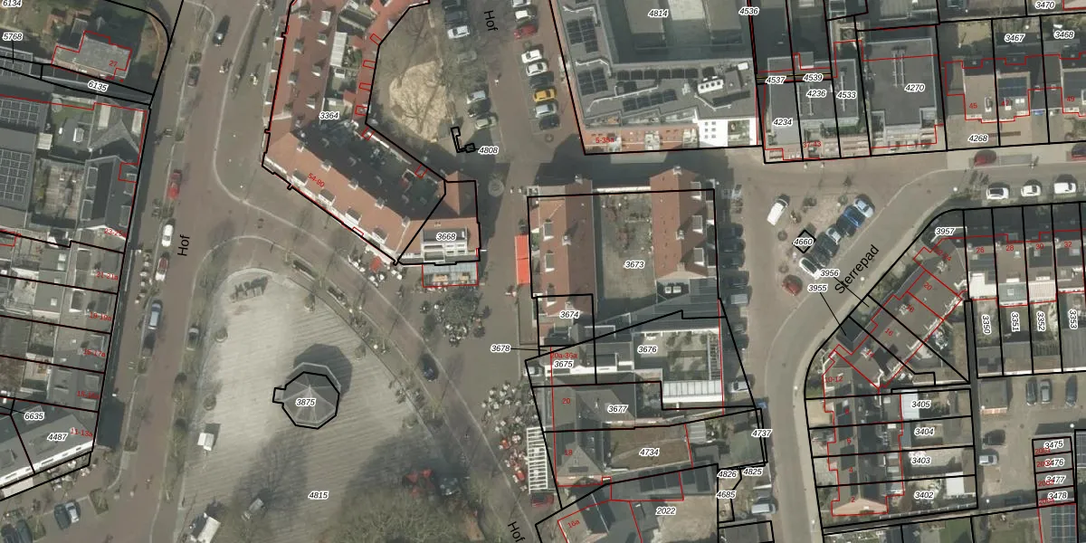 Het perceel waarop Hof 36 staat heeft een oppervlakte van 766 m². Dit is een groot perceel. De perceeloppervlakte wordt geregistreerd door het Kadaster. Gedetailleerde informatie over de maten van dit perceel kunt u vinden in het rapport Kadastrale kaart met maatvoering van Hof 36.