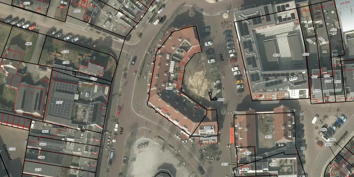 Het perceel waarop Hof 64 staat heeft een oppervlakte van 1165 m². Dit is een zeer groot perceel. De perceeloppervlakte wordt geregistreerd door het Kadaster. Gedetailleerde informatie over de maten van dit perceel kunt u vinden in het rapport Kadastrale kaart met maatvoering van Hof 64.