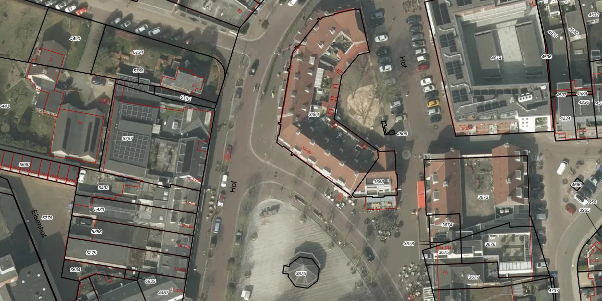 Het perceel waarop Hof 82 staat heeft een oppervlakte van 1165 m². Dit is een zeer groot perceel. De perceeloppervlakte wordt geregistreerd door het Kadaster. Gedetailleerde informatie over de maten van dit perceel kunt u vinden in het rapport Kadastrale kaart met maatvoering van Hof 82.