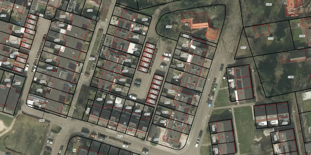 Het perceel waarop Jan Roeststraat 2007 staat heeft een oppervlakte van 21 m². Dit is een klein perceel. De perceeloppervlakte wordt geregistreerd door het Kadaster. Gedetailleerde informatie over de maten van dit perceel kunt u vinden in het rapport Kadastrale kaart met maatvoering van Jan Roeststraat 2007.