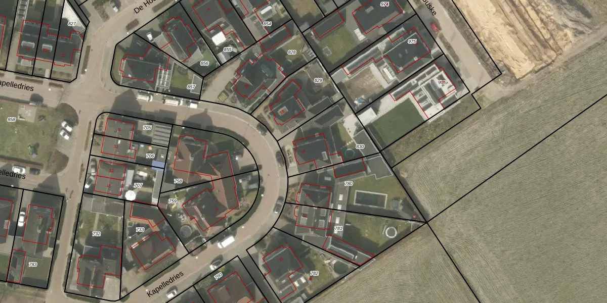 Het perceel waarop Kapelledries 16 staat heeft een oppervlakte van 479 m². Dit is een groot perceel. De perceeloppervlakte wordt geregistreerd door het Kadaster. Gedetailleerde informatie over de maten van dit perceel kunt u vinden in het rapport Kadastrale kaart met maatvoering van Kapelledries 16.