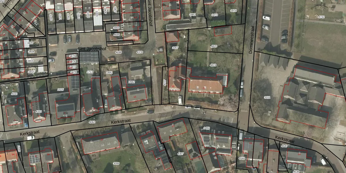 Het perceel waarop Kerkstraat 15 staat heeft een oppervlakte van 470 m². Dit is een groot perceel. De perceeloppervlakte wordt geregistreerd door het Kadaster. Gedetailleerde informatie over de maten van dit perceel kunt u vinden in het rapport Kadastrale kaart met maatvoering van Kerkstraat 15.