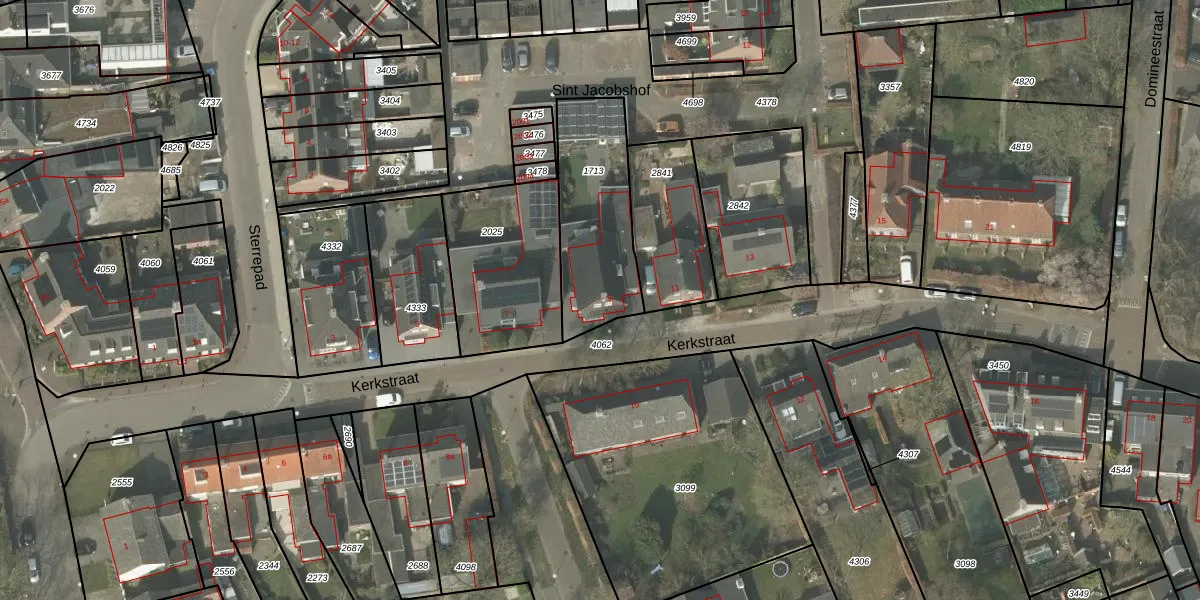Het perceel waarop Kerkstraat 9 staat heeft een oppervlakte van 472 m². Dit is een groot perceel. De perceeloppervlakte wordt geregistreerd door het Kadaster. Gedetailleerde informatie over de maten van dit perceel kunt u vinden in het rapport Kadastrale kaart met maatvoering van Kerkstraat 9.