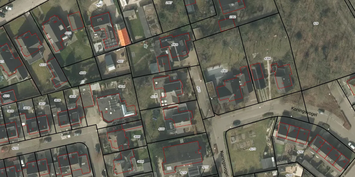 Het perceel waarop Koningsvogel 5 staat heeft een oppervlakte van 611 m². Dit is een groot perceel. De perceeloppervlakte wordt geregistreerd door het Kadaster. Gedetailleerde informatie over de maten van dit perceel kunt u vinden in het rapport Kadastrale kaart met maatvoering van Koningsvogel 5.