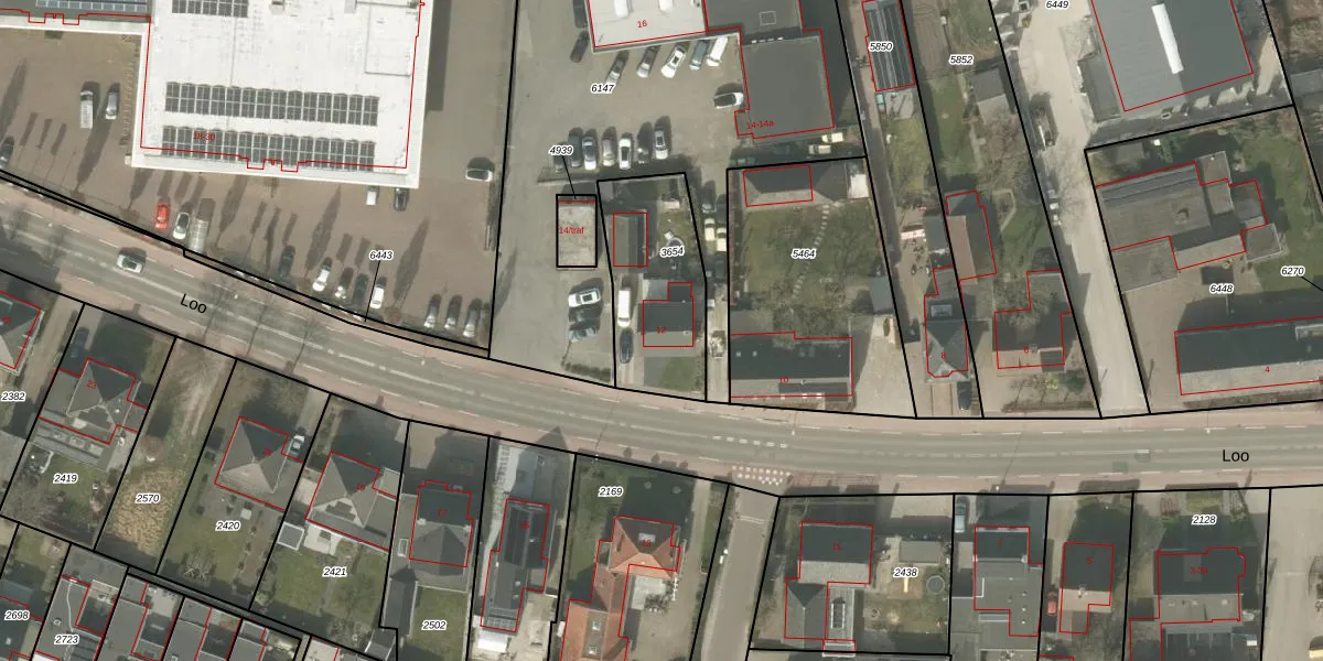 Het perceel waarop Loo 12 staat heeft een oppervlakte van 465 m². Dit is een groot perceel. De perceeloppervlakte wordt geregistreerd door het Kadaster. Gedetailleerde informatie over de maten van dit perceel kunt u vinden in het rapport Kadastrale kaart met maatvoering van Loo 12.
