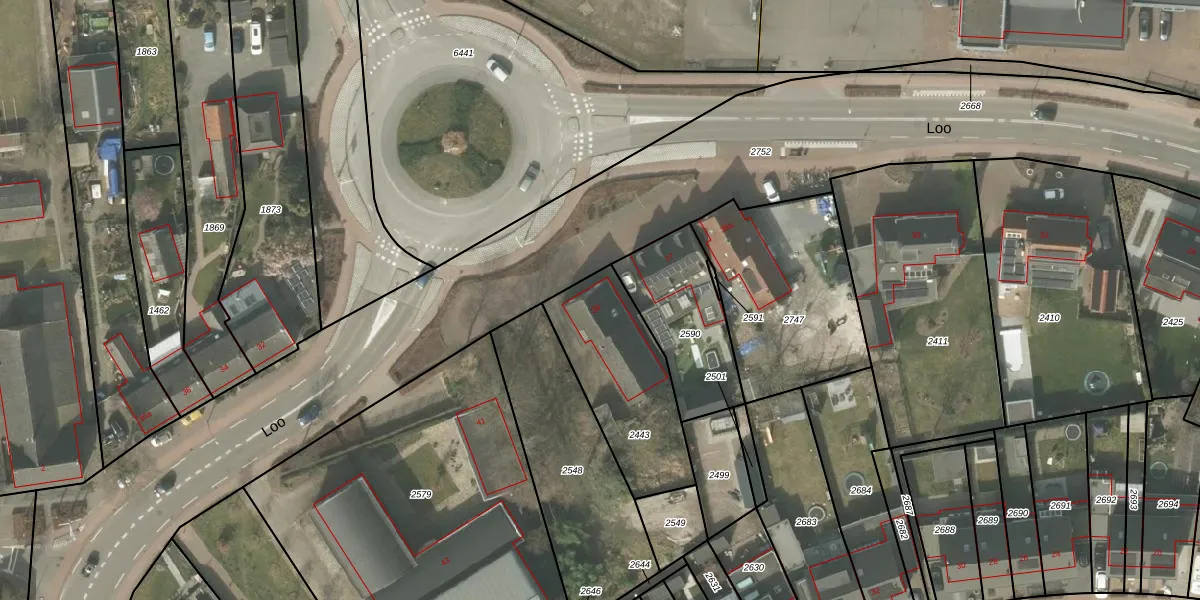 Het perceel waarop Loo 39 staat heeft een oppervlakte van 500 m². Dit is een groot perceel. De perceeloppervlakte wordt geregistreerd door het Kadaster. Gedetailleerde informatie over de maten van dit perceel kunt u vinden in het rapport Kadastrale kaart met maatvoering van Loo 39.