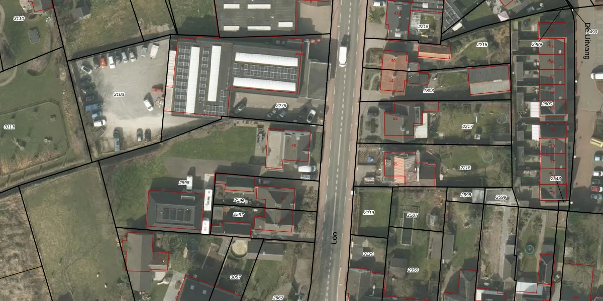 Het perceel waarop Loo 48 staat heeft een oppervlakte van 1723 m². Dit is een zeer groot perceel. De perceeloppervlakte wordt geregistreerd door het Kadaster. Gedetailleerde informatie over de maten van dit perceel kunt u vinden in het rapport Kadastrale kaart met maatvoering van Loo 48.