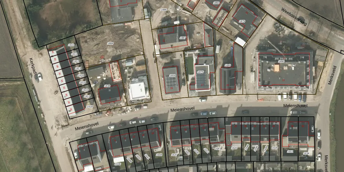 Het perceel waarop Meienshovel 15 staat heeft een oppervlakte van 429 m². Dit is een groot perceel. De perceeloppervlakte wordt geregistreerd door het Kadaster. Gedetailleerde informatie over de maten van dit perceel kunt u vinden in het rapport Kadastrale kaart met maatvoering van Meienshovel 15.
