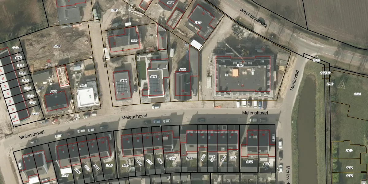 Het perceel waarop Meienshovel 19 staat heeft een oppervlakte van 552 m². Dit is een groot perceel. De perceeloppervlakte wordt geregistreerd door het Kadaster. Gedetailleerde informatie over de maten van dit perceel kunt u vinden in het rapport Kadastrale kaart met maatvoering van Meienshovel 19.