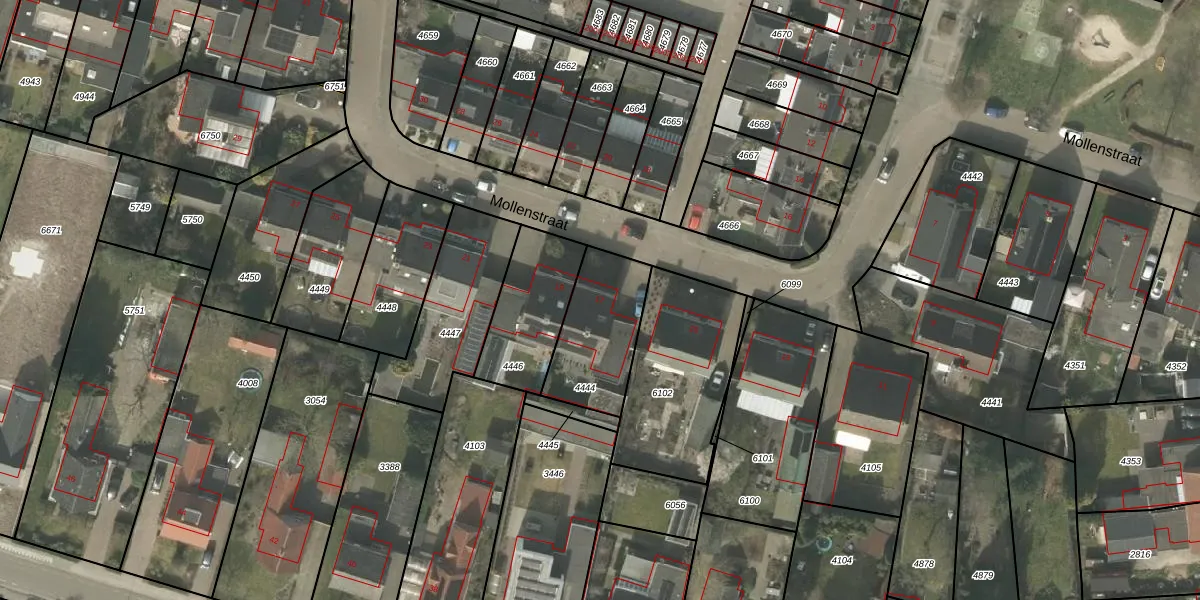 Gebruik de zoekbalk of klik op een perceel voor informatie over de adressen binnen dit perceel.