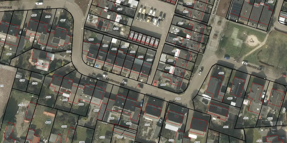 Het perceel waarop Mollenstraat 18 staat heeft een oppervlakte van 155 m². Dit is een middelgroot perceel. De perceeloppervlakte wordt geregistreerd door het Kadaster. Gedetailleerde informatie over de maten van dit perceel kunt u vinden in het rapport Kadastrale kaart met maatvoering van Mollenstraat 18.
