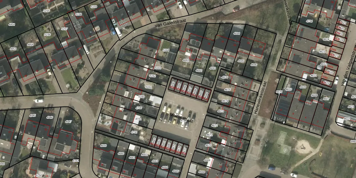 Gebruik de zoekbalk of klik op een perceel voor informatie over de adressen binnen dit perceel.