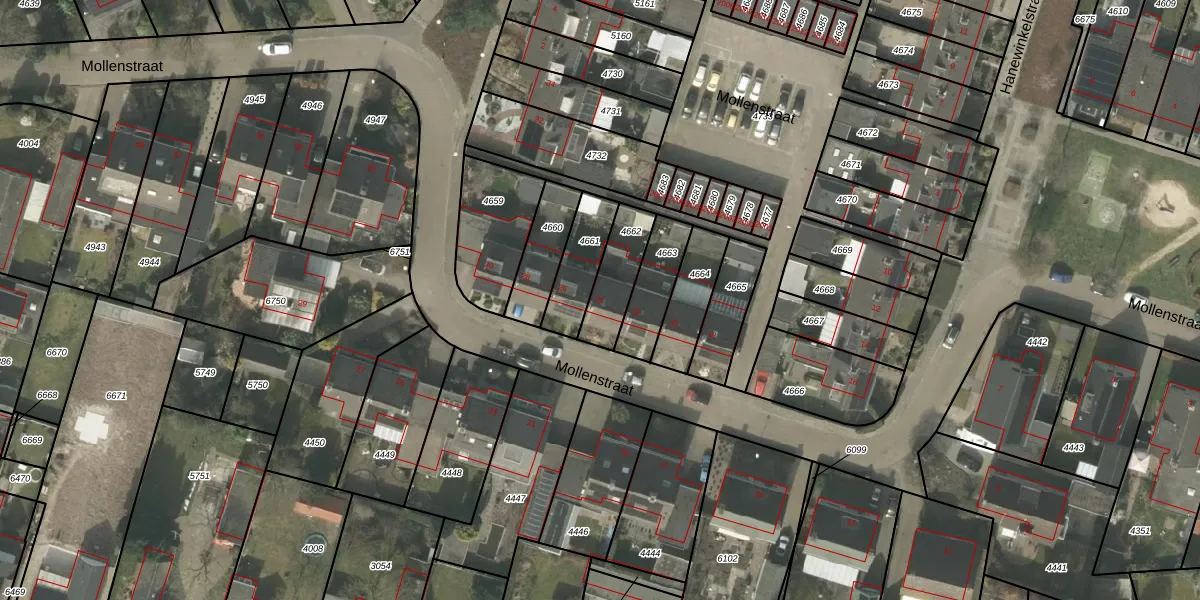 Het perceel waarop Mollenstraat 24 staat heeft een oppervlakte van 153 m². Dit is een middelgroot perceel. De perceeloppervlakte wordt geregistreerd door het Kadaster. Gedetailleerde informatie over de maten van dit perceel kunt u vinden in het rapport Kadastrale kaart met maatvoering van Mollenstraat 24.