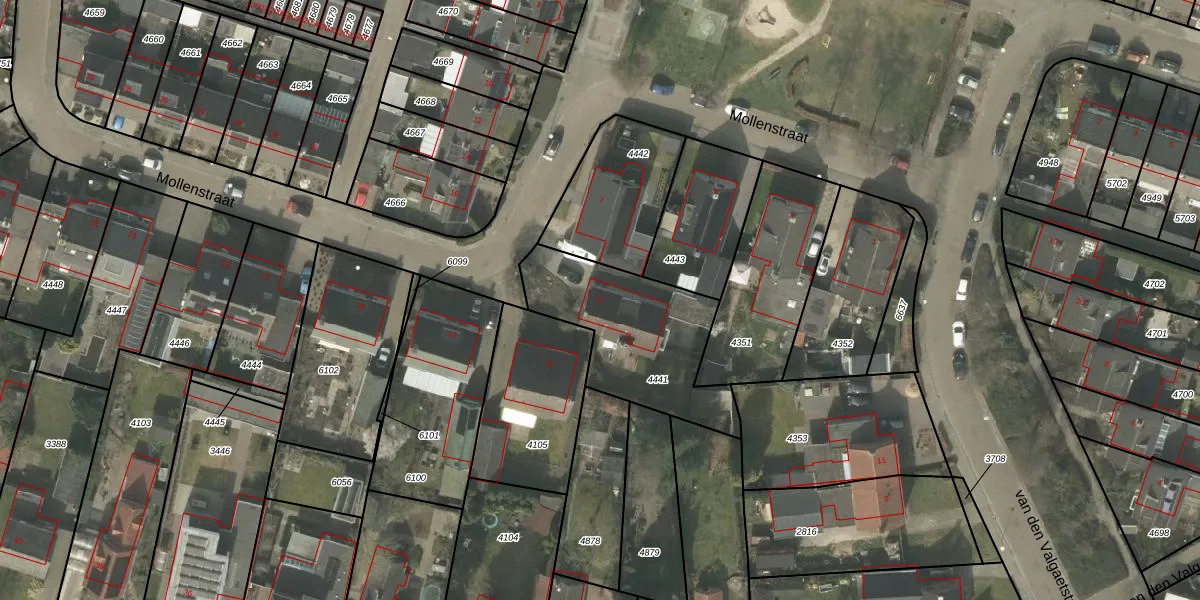 Mollenstraat 9 is gelegen op kadastraal perceel BEK00D4441. Deze kadastrale aanduiding is uniek en wordt gebruikt door het Kadaster om eigendomsrechten en andere zakelijke rechten vast te leggen. Het perceel maakt onderdeel uit van de kadastrale gemeente Bergeijk.