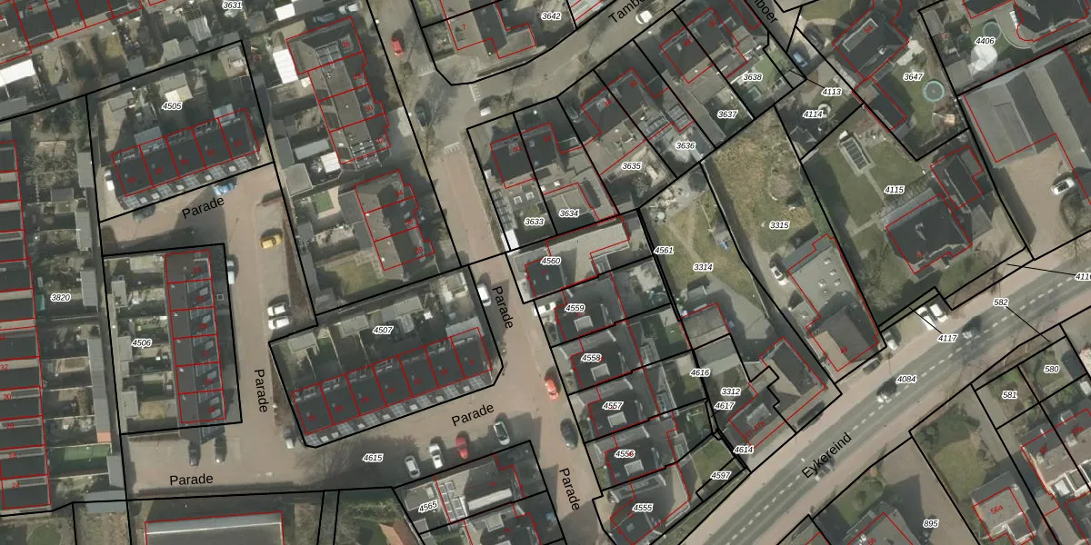 Parade 1 is gelegen op kadastraal perceel BEK00B4560. Deze kadastrale aanduiding is uniek en wordt gebruikt door het Kadaster om eigendomsrechten en andere zakelijke rechten vast te leggen. Het perceel maakt onderdeel uit van de kadastrale gemeente Bergeijk.