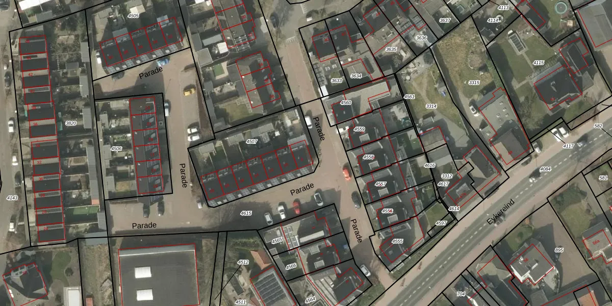 Het perceel waarop Parade 8 staat heeft een oppervlakte van 865 m². Dit is een groot perceel. De perceeloppervlakte wordt geregistreerd door het Kadaster. Gedetailleerde informatie over de maten van dit perceel kunt u vinden in het rapport Kadastrale kaart met maatvoering van Parade 8.