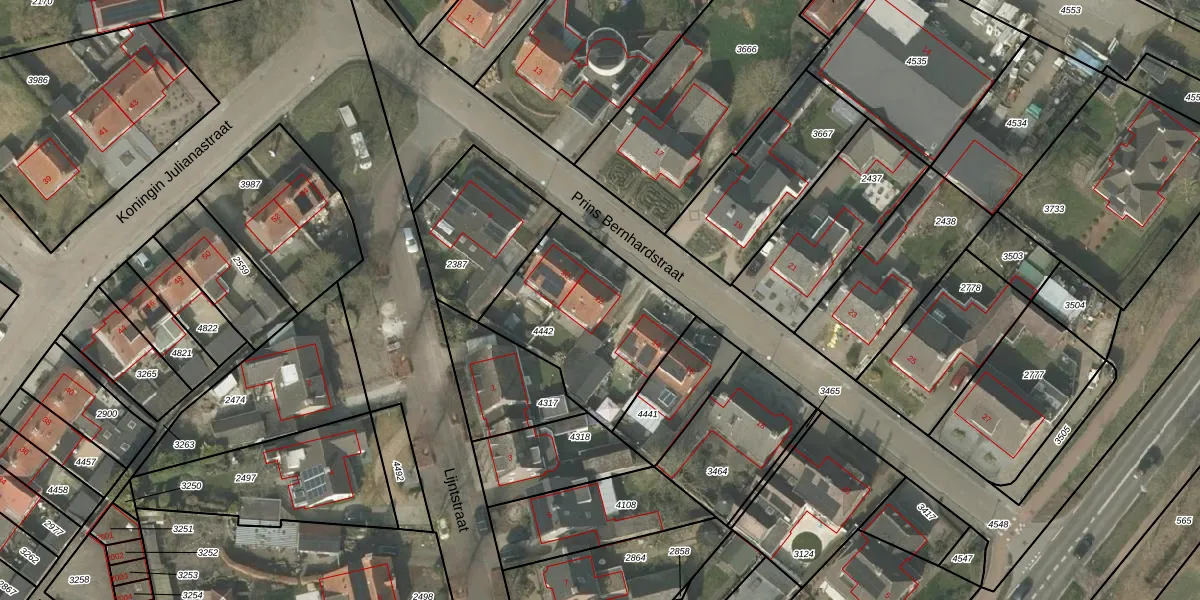 Het perceel waarop Prins Bernhardstraat 12 staat heeft een oppervlakte van 616 m². Dit is een groot perceel. De perceeloppervlakte wordt geregistreerd door het Kadaster. Gedetailleerde informatie over de maten van dit perceel kunt u vinden in het rapport Kadastrale kaart met maatvoering van Prins Bernhardstraat 12.