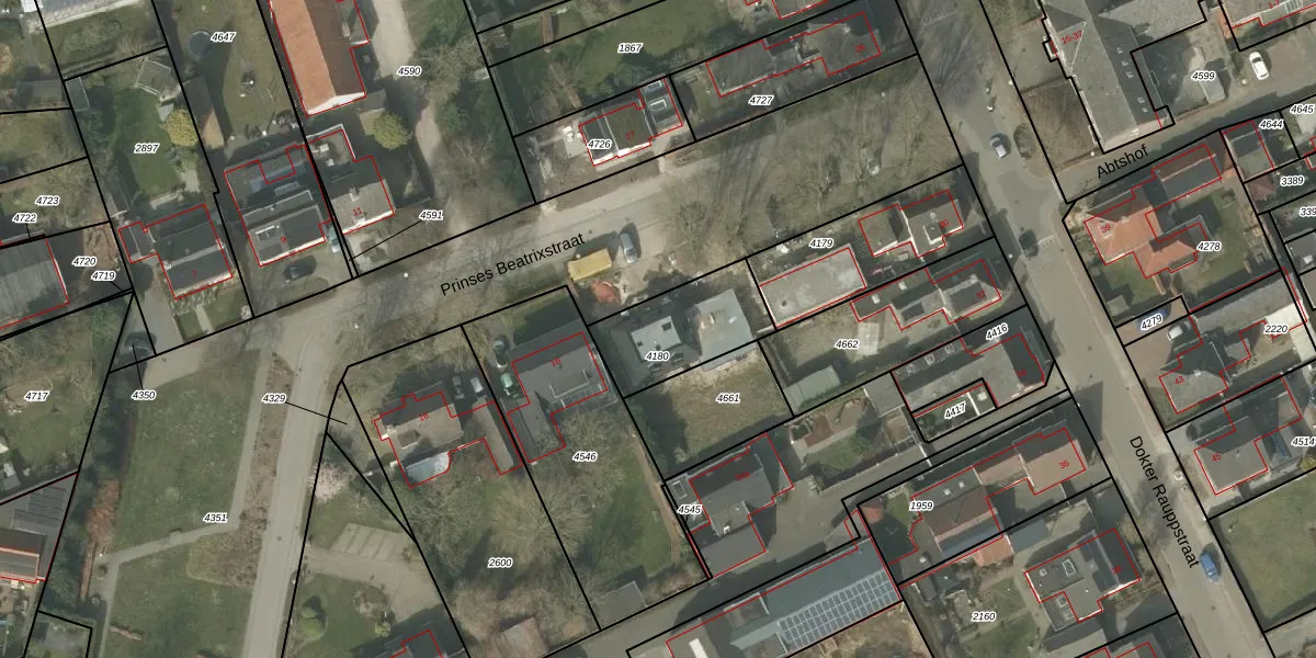 Prinses Beatrixstraat 20 is gelegen op kadastraal perceel BEK00B4180. Deze kadastrale aanduiding is uniek en wordt gebruikt door het Kadaster om eigendomsrechten en andere zakelijke rechten vast te leggen. Het perceel maakt onderdeel uit van de kadastrale gemeente Bergeijk.