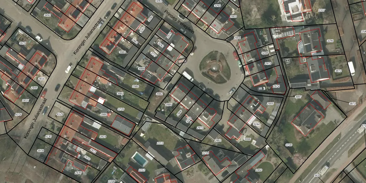 Prinses Ireneplein 5 is gelegen op kadastraal perceel BEK00B3985. Deze kadastrale aanduiding is uniek en wordt gebruikt door het Kadaster om eigendomsrechten en andere zakelijke rechten vast te leggen. Het perceel maakt onderdeel uit van de kadastrale gemeente Bergeijk.