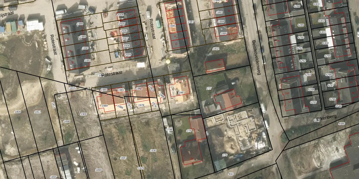 Rotestraat 13 is gelegen op kadastraal perceel BEK00I1987. Deze kadastrale aanduiding is uniek en wordt gebruikt door het Kadaster om eigendomsrechten en andere zakelijke rechten vast te leggen. Het perceel maakt onderdeel uit van de kadastrale gemeente Bergeijk.