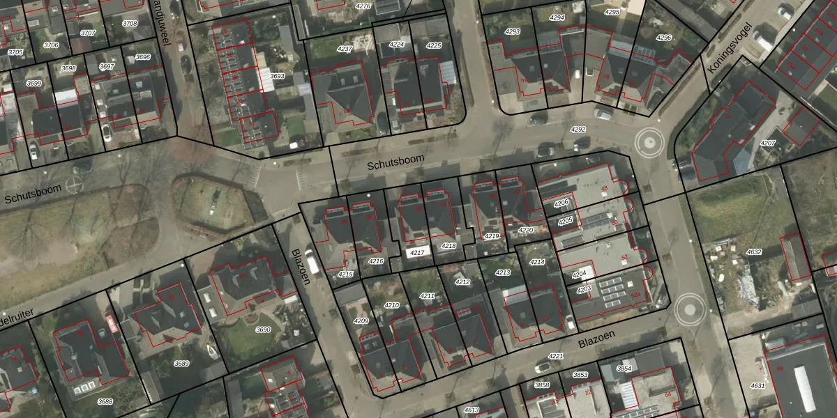 Het perceel waarop Schutsboom 40 staat heeft een oppervlakte van 182 m². Dit is een middelgroot perceel. De perceeloppervlakte wordt geregistreerd door het Kadaster. Gedetailleerde informatie over de maten van dit perceel kunt u vinden in het rapport Kadastrale kaart met maatvoering van Schutsboom 40.
