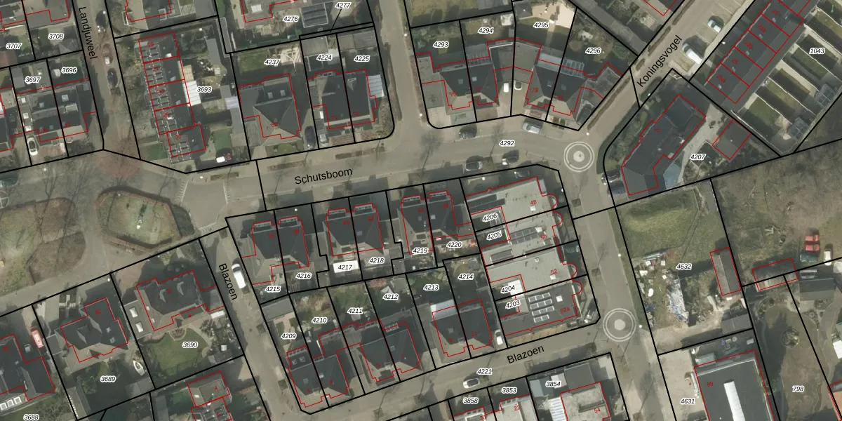 Het perceel waarop Schutsboom 44 staat heeft een oppervlakte van 181 m². Dit is een middelgroot perceel. De perceeloppervlakte wordt geregistreerd door het Kadaster. Gedetailleerde informatie over de maten van dit perceel kunt u vinden in het rapport Kadastrale kaart met maatvoering van Schutsboom 44.
