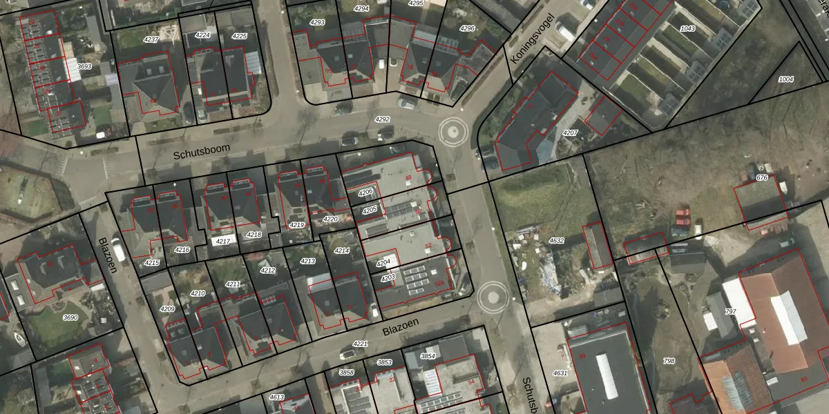 Het perceel waarop Schutsboom 50 staat heeft een oppervlakte van 196 m². Dit is een middelgroot perceel. De perceeloppervlakte wordt geregistreerd door het Kadaster. Gedetailleerde informatie over de maten van dit perceel kunt u vinden in het rapport Kadastrale kaart met maatvoering van Schutsboom 50.