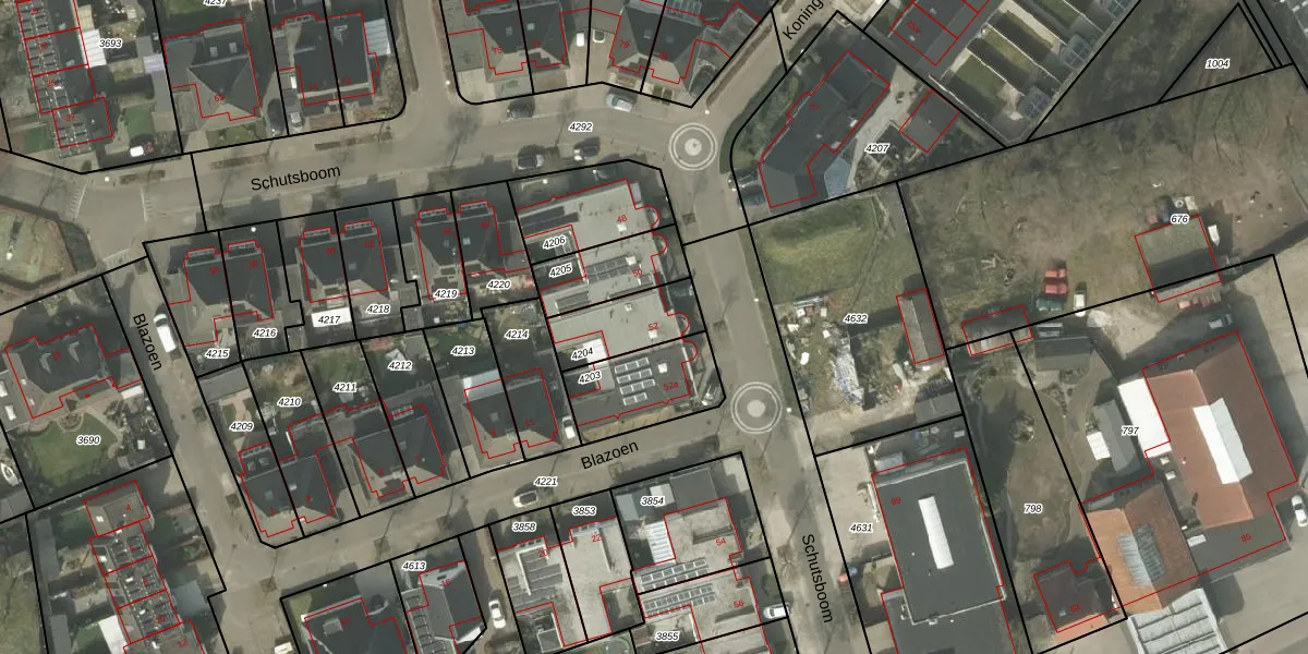 Het perceel waarop Schutsboom 52 staat heeft een oppervlakte van 196 m². Dit is een middelgroot perceel. De perceeloppervlakte wordt geregistreerd door het Kadaster. Gedetailleerde informatie over de maten van dit perceel kunt u vinden in het rapport Kadastrale kaart met maatvoering van Schutsboom 52.