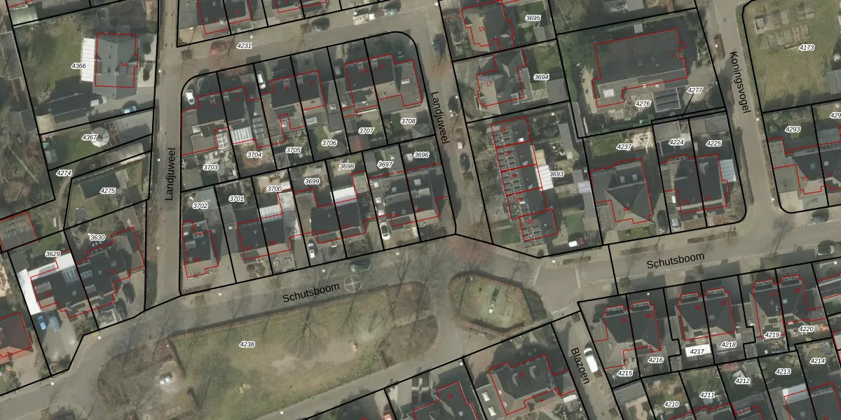 Het perceel waarop Schutsboom 67 staat heeft een oppervlakte van 216 m². Dit is een middelgroot perceel. De perceeloppervlakte wordt geregistreerd door het Kadaster. Gedetailleerde informatie over de maten van dit perceel kunt u vinden in het rapport Kadastrale kaart met maatvoering van Schutsboom 67.