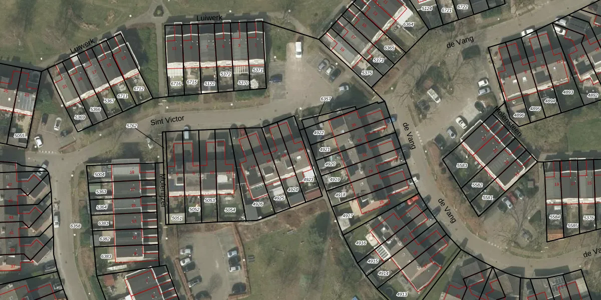 Het perceel waarop Sint Victor 20 staat heeft een oppervlakte van 172 m². Dit is een middelgroot perceel. De perceeloppervlakte wordt geregistreerd door het Kadaster. Gedetailleerde informatie over de maten van dit perceel kunt u vinden in het rapport Kadastrale kaart met maatvoering van Sint Victor 20.