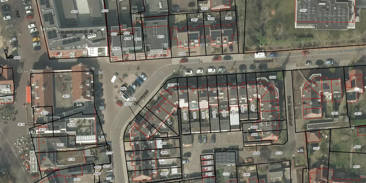 Gebruik de zoekbalk of klik op een perceel voor informatie over de adressen binnen dit perceel.