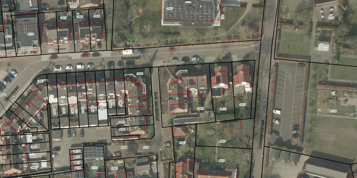 Het perceel waarop Sterrepad 54 staat heeft een oppervlakte van 974 m². Dit is een groot perceel. De perceeloppervlakte wordt geregistreerd door het Kadaster. Gedetailleerde informatie over de maten van dit perceel kunt u vinden in het rapport Kadastrale kaart met maatvoering van Sterrepad 54.