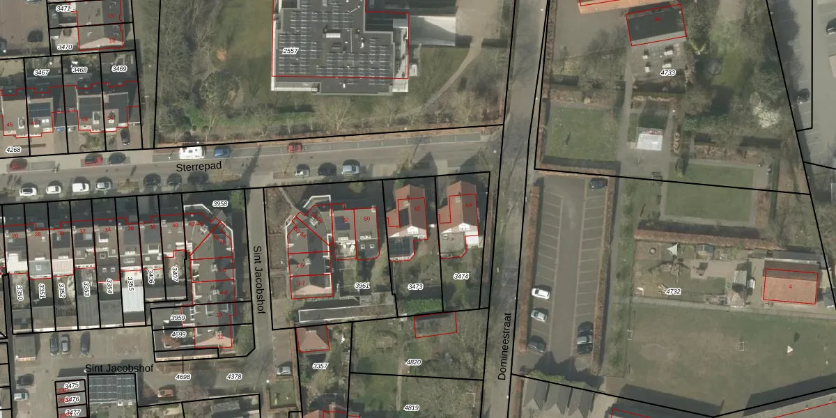 Het perceel waarop Sterrepad 62 staat heeft een oppervlakte van 401 m². Dit is een groot perceel. De perceeloppervlakte wordt geregistreerd door het Kadaster. Gedetailleerde informatie over de maten van dit perceel kunt u vinden in het rapport Kadastrale kaart met maatvoering van Sterrepad 62.