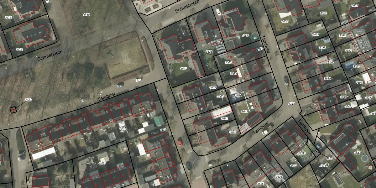 Het perceel waarop Tamboer 1 staat heeft een oppervlakte van 245 m². Dit is een middelgroot perceel. De perceeloppervlakte wordt geregistreerd door het Kadaster. Gedetailleerde informatie over de maten van dit perceel kunt u vinden in het rapport Kadastrale kaart met maatvoering van Tamboer 1.