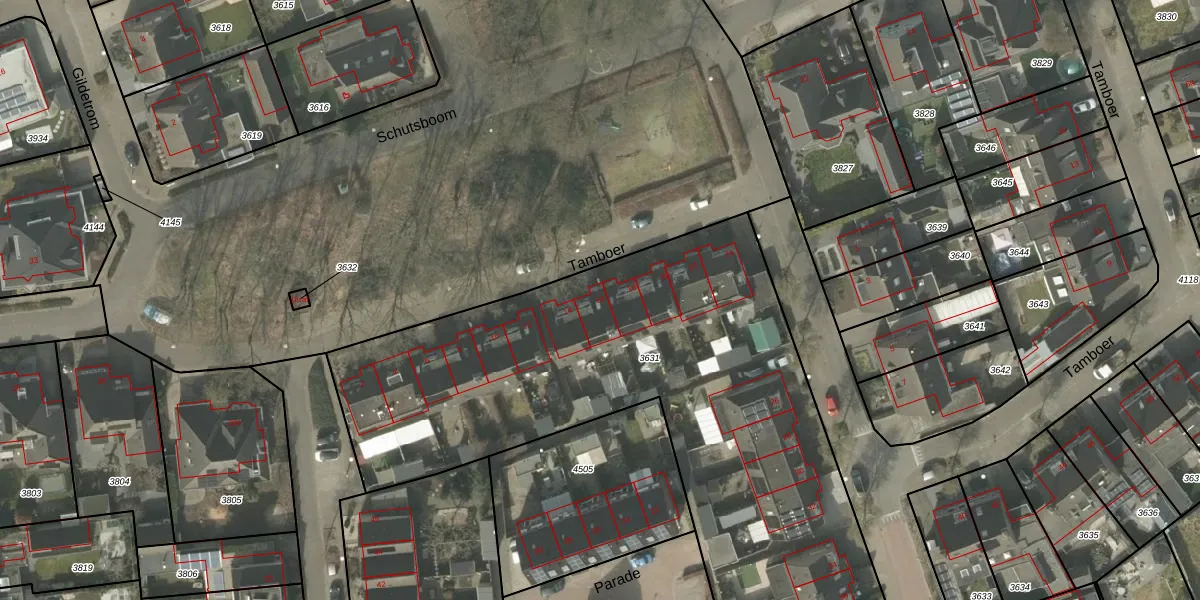 Het perceel waarop Tamboer 16 staat heeft een oppervlakte van 3181 m². Dit is een zeer groot perceel. De perceeloppervlakte wordt geregistreerd door het Kadaster. Gedetailleerde informatie over de maten van dit perceel kunt u vinden in het rapport Kadastrale kaart met maatvoering van Tamboer 16.